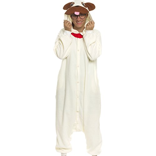 Silver Lilly Unisex Adult Pajamas – Plush One Piece Cosplay Pug Dog Animal Costume