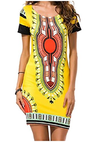 Aprilley Women Retro Floral Sexy Dashiki Bodycon Pencil Dress