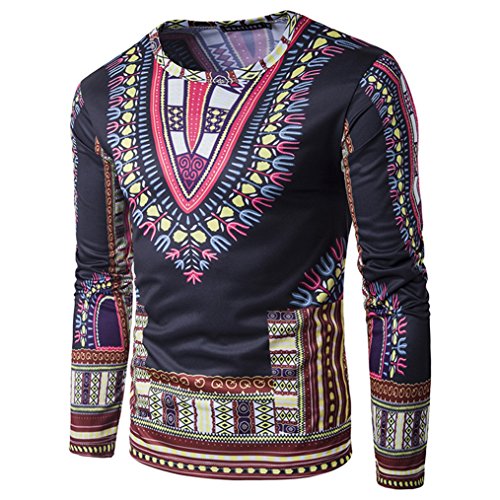 Annystore Mens Long Sleeve Bright Traditional African Clothing Dashiki T Shirts