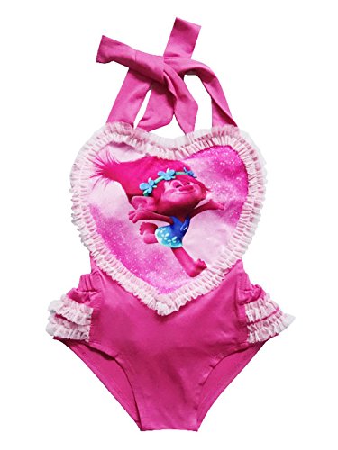 Wengift Trolls Cute Love Heart One Piece Summer Swimwear Girls Princess Swimsuit