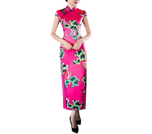 XueXian(TM) Women’s Chinese Style Cheongsam Summer Long Qipao Party Dress Rose