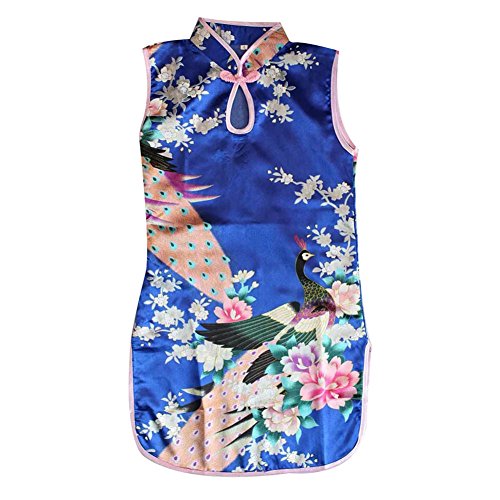 Weixinbuy Kid Girls Sleeveless Peacock Printed Chinese Cheongsam Dress