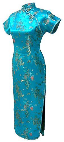 7Fairy Women’s Vtg Turquoise Dragon Long Chinese Dress Cheongsam Size