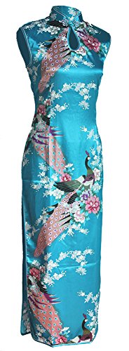 7Fairy Women’s Silk Turquoise Keyhole Peacock Long Chinese Dress