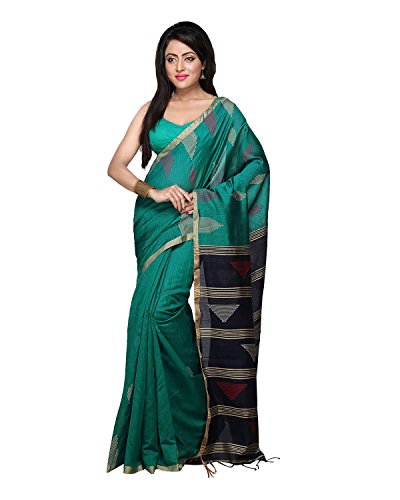 Bengal Handloom Saree Women’s Silk Cotton Handwork Free Size Turquoise