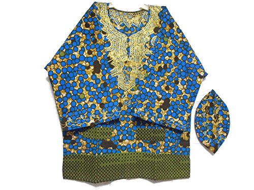 African Shirts Mens Handmade Dashiki Traditional Tribal Blouse with Hat One Size