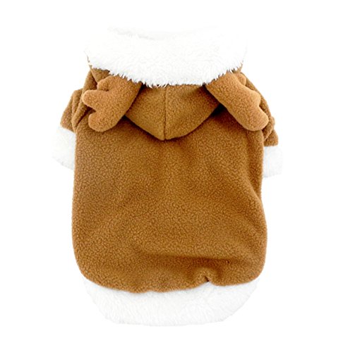 SMALLLEE_LUCKY_STORE Pet Small Dog Cat Clothes Fleece Reindeer Costume Halloween Dress Up Khaki