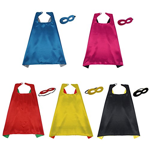 iROLEWIN Dress Up Capes and Masks Reversible Dual Color for Children’s Superhero Party Favor Costume Sets