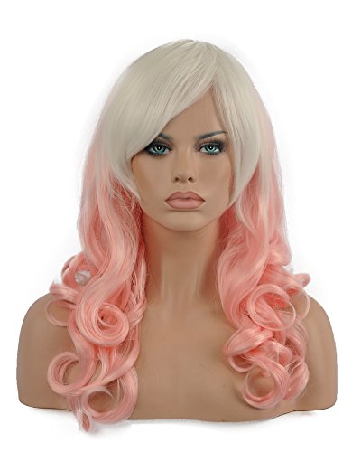 Diy-Wig Natural Ombre Wig White to Pink Long Curly Cosplay Costume Wig