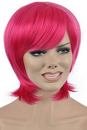 Diy-Wig Short Hot Pink Party Wig for Cosplay Halloween Costume Anime for Girl