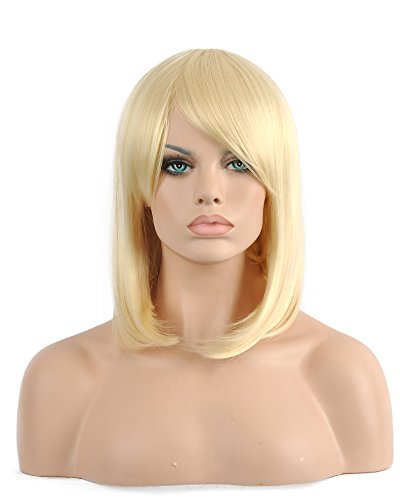 Diy-Wig Beautiful Blond Womens Shoulder Length Straight Cosplay Wig Bangs