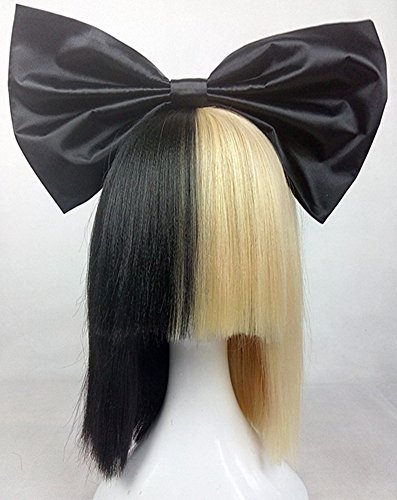 Diy-Wig Fashion Bowknot Half Black Blonde 2 Tone Shoulder Length Cosplay Costume Wig