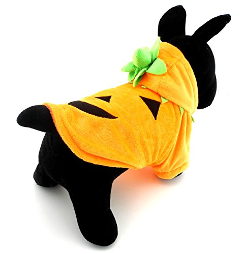SELMAI Pet Puppy Cat Small Dog Clothes Warm Fleece Pumpkin Costume Halloween Dress Up Orange
