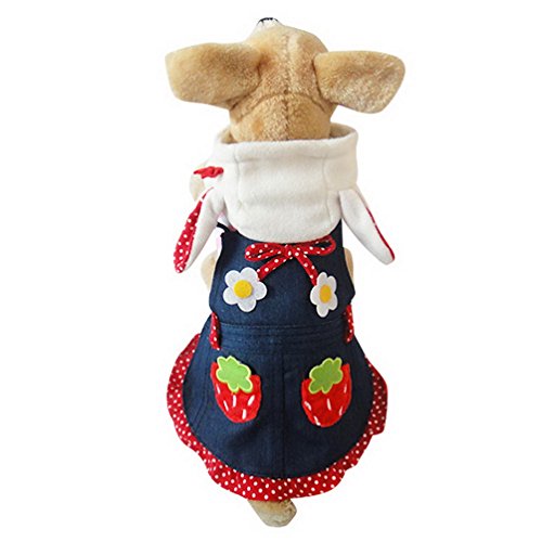 SELMAI Sweet Strawberry Bunny Costume Denim Dog Dress Striped Top Spring, for Small Dog Cat Puppy