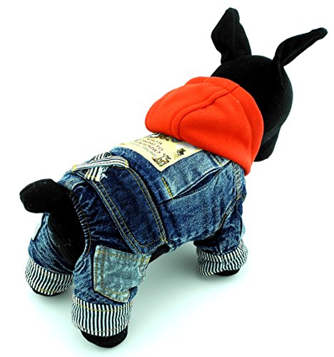 SELMAI Pet Puppy Cat Small Dog Clothes Fleece Denim Coat Jacket Jumpsuit Male Costume Blue Dog Jumpsuit