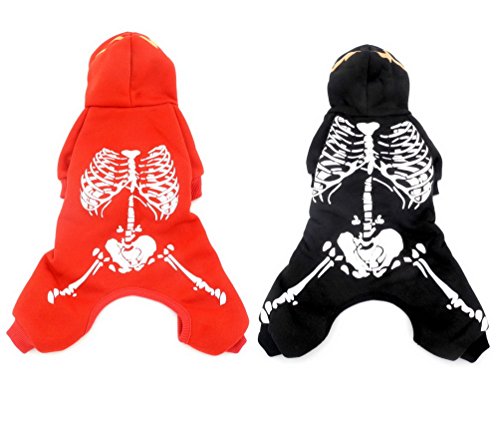 SELMAI Pet Clothes for Puppy Cat Small Dog Noctilucent Skeleton Hooide Jacket Jumpsuit Costume Clothing