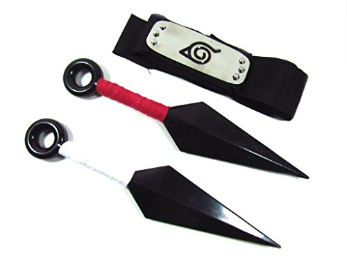 OliaDesign Konoha Leaf Village Ninja Shinobi Cosplay Headband with Red and White Ninja Weapons Props Big Kunai Plastic Toy