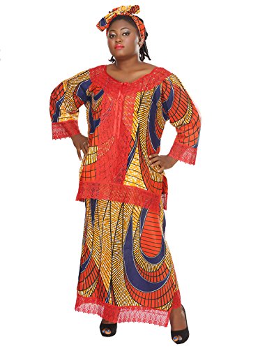 African Planet Women’s Three Pc Skirt Blouse Red Ethnic Nigerian Lace Kitenge