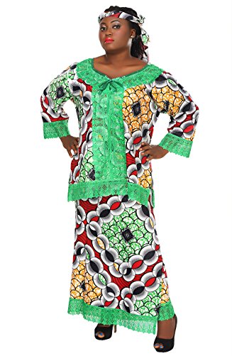 African Planet Women’s Skirt Set Printed Green Sengal Wax Lace Gele Headwrap