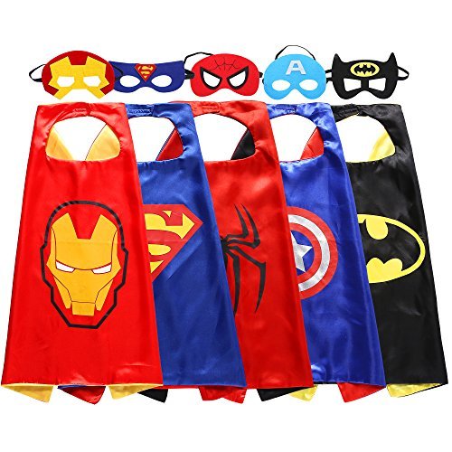 Zaleny Kids Superhero Dress Up Costumes 5 Satin Capes with 5 Felt Masks