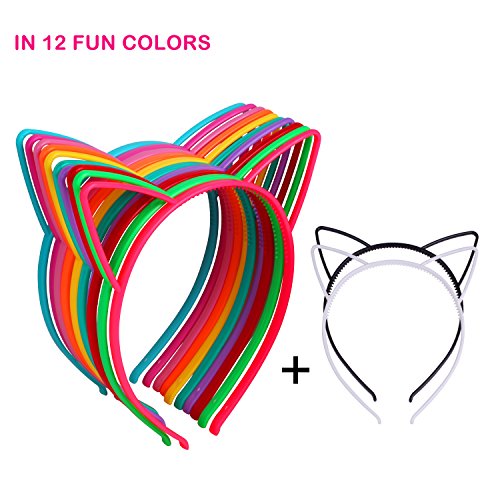 12Pcs Cat Ear Headbands Girl’s Plastic Headbands Cat Bow Hairbands for Women and Girls, Costume Favors Accessories