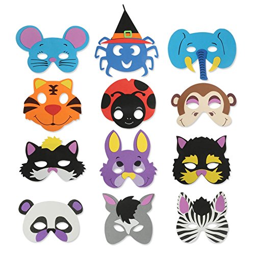 Foam Animal Masks | 12pcs Assorted Animal Foam Masks for Kids Birthday Party Safari Zoo Party Dress Up Costume | Durable Animal Party Masks with Rubber Band String | Various Colors | 1604