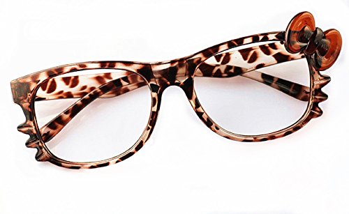 10 FancyG® Cute Nerd Glass Frame Bow Tie Knot Cat Eyes for Girls Leopard NO LENS