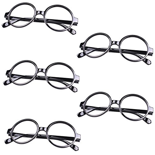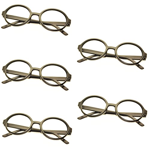 5 X FancyG® Retro Geek Nerd Style Round Shape Glass Frame NO LENSES – Black
