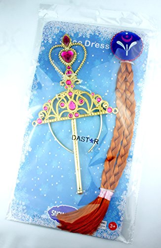 3pcs/set Cosplay Costume for Anna Frozen (Hair Wig+crown+magic Wand) Princess Party Dress-Up Accessories