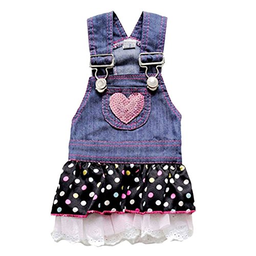 Adarl Cute Denim Strap Chiffon T-Shirt Dress Coat Clothes Apparel Costume For Dogs Cats Puppy Pets