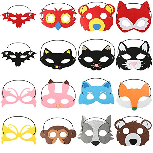 Coobey 16 Pieces Animal Masks Animal Felt Masks Half Masks Party Masks Kids Animal Mask Toys with Elastic Ribbon for Party, Halloween ,Masquerade