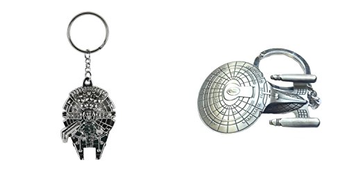 (2-Pack) Star Wars Millenium Falcon and Star Trek Enterprise Keychain Keyring with Giftbox