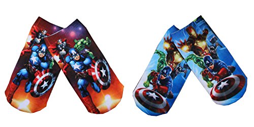 (2-Pack) Marvel Comics Boys Sock Size 6-8.5 Avengers Characters Graphic Superhero Ankle Socks