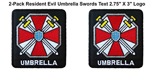 (2-Pack) Resident Evil Umbrella Corp Swords with Text Logo Iron/Sew-On Embroidered 2.75″ X 3″ Patch