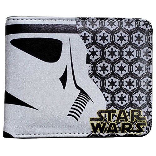 Star Wars Darth Vader and Storm Trooper Closeup Faces with Empire Logo Background Movie Themed Leather Like Bi Fold Wallet (Always Arrives with a Gift Box)