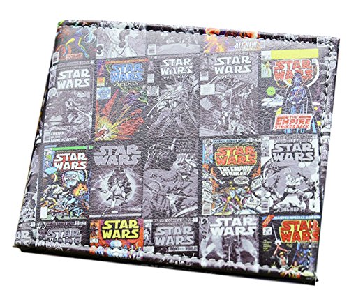 Star Wars Comic Book Covers Black and White with Color Mixed In Movie Themed Leather Like Bi Fold Wallet (Always Arrives with a Gift Box)