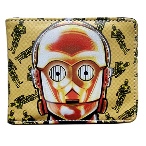 Star Wars C3PO Face Close Up Movie Themed Leather Like Bi Fold Wallet (Always Arrives with a Gift Box)