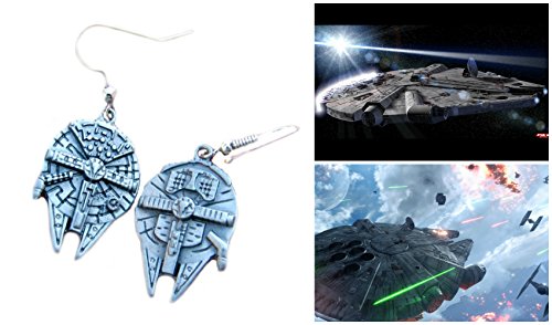 Star Wars Silvertone Millennium Falcon Dangle Earrings (with Gift Box)