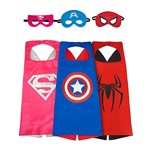 Asgift Cartoon Costume 3Pcs Satin Capes with Felt Masks Costumes for Kids