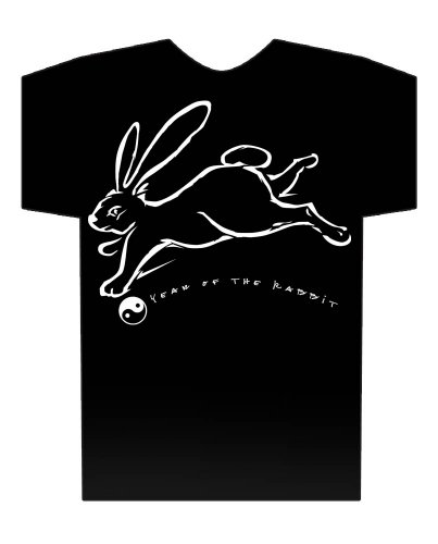 Asian Oriental Chinese Zodiac Hi-NRG Black T-Shirt – Year of the Rabbit: Birth years 1927, 39, 51, 63, 75, 87, 99, 2011