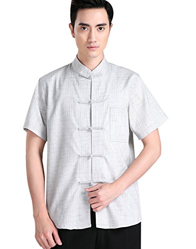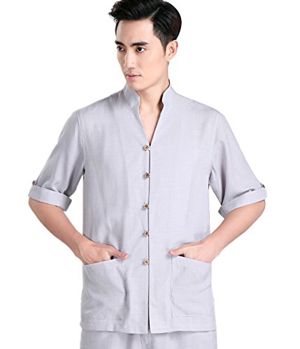 ACVIP Men Short Sleeve Pocketed Tai Chi Kung Fu Jackets Tops