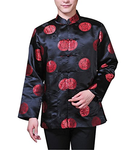 ACVIP Men’s Lucky Coin and Dragon Brocade Long Sleeve Chinese Kung Fu Tang Jacket Shirt