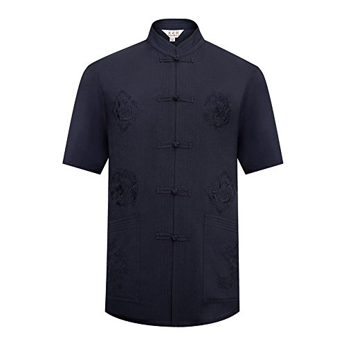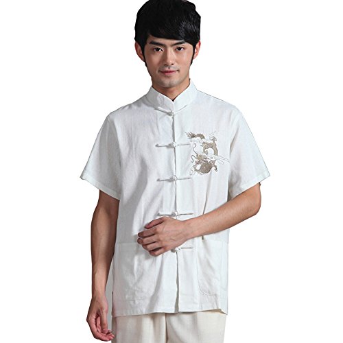 FangNer Men Chinese Short Sleeve Tang Suit Kung Fu Uniform Shirt
