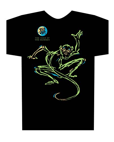 Asian Oriental Chinese Zodiac Neon-NRG Black T-Shirt – Year of the Monkey: Birth years 1932, 44, 56, 68, 80, 92, 2004, 2016
