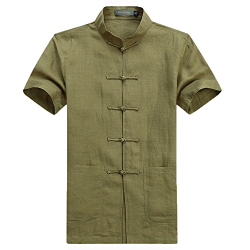 FangNer Men ‘s Summer Cotton Linen Short Chinese Style Loaded Tang Tuit Kung Fu T-shirts