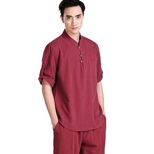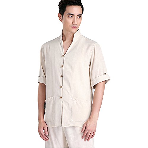 FangNer Men’s Chinese KungFu Taichi Martial Arts Suit Cotton Short Sleeve Shirt