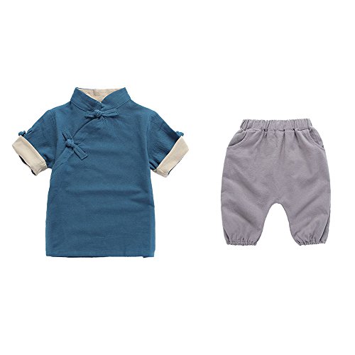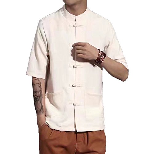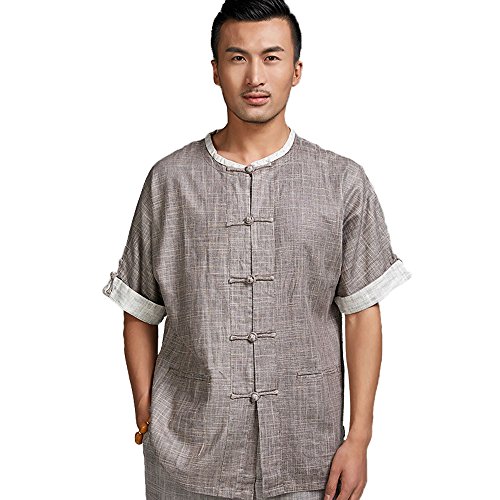 FangNer Men’s Chinese Traditional Tang Suit Linen Short Sleeve Button Kung Fu Shirts