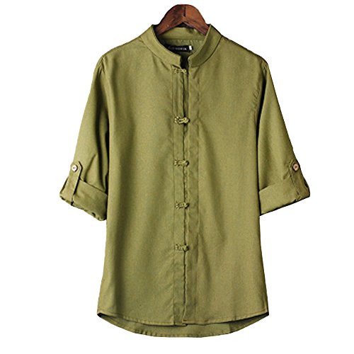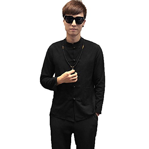 FangNer Men’s Chinese Wind Retro Fashion Plate Buttons Stand KungFu Shirts Linen Tang Suit
