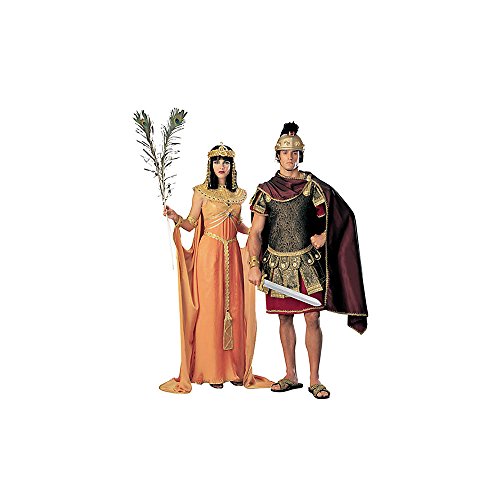 The costume includes Heavily adorned headpiece, embellished collar with attached cape, wristbands and armbands, empire waist gown with finely pleated skirt.