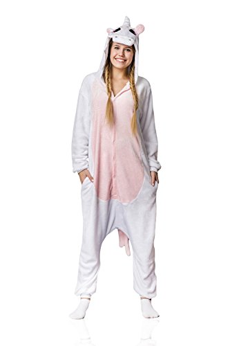 Unicorn onesie for adults. One piece pajamas with hood, button up closure, side pockets, booty zipper.